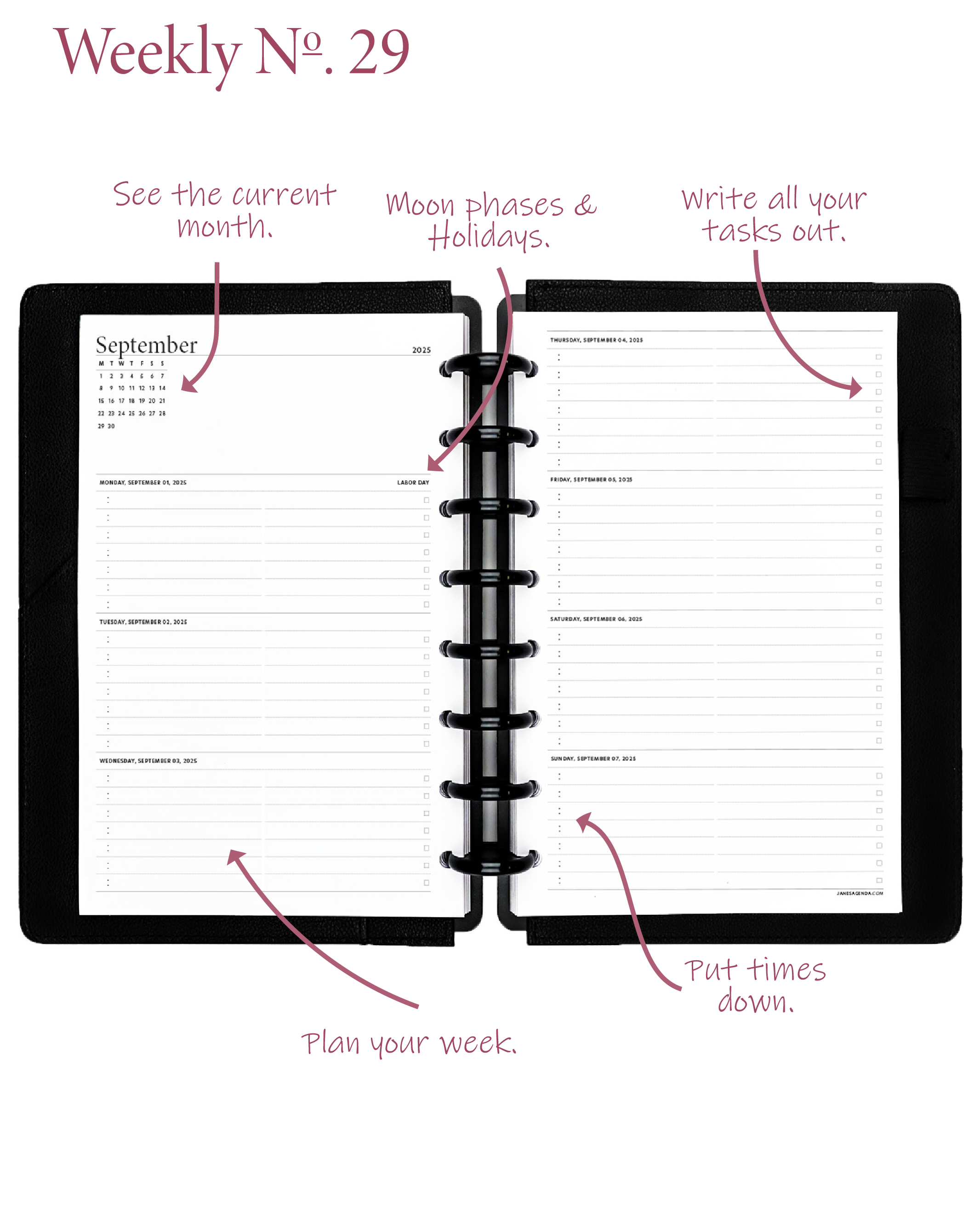 2025 Calendar | Horizontal Weekly Planner Inserts | Jane’s Agenda